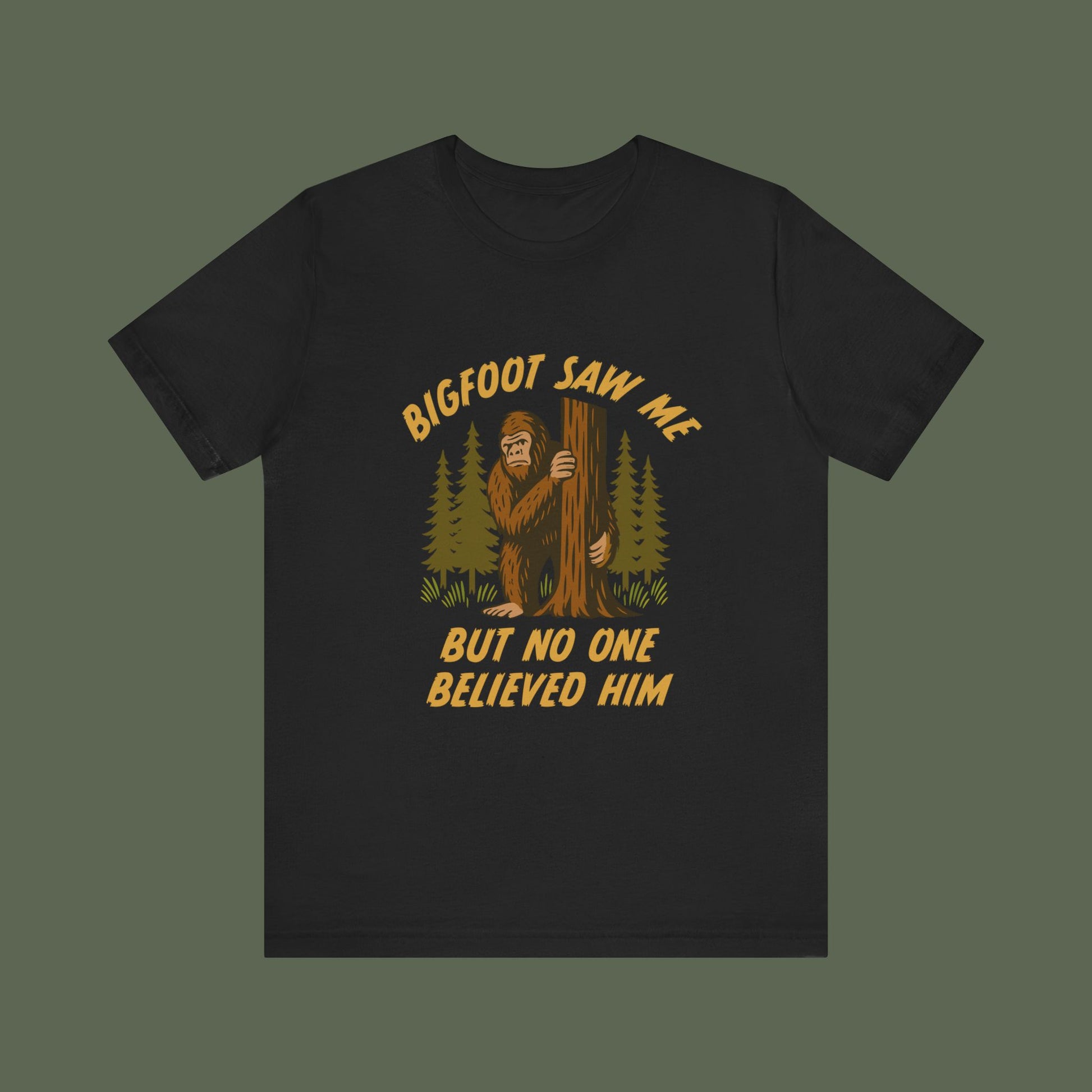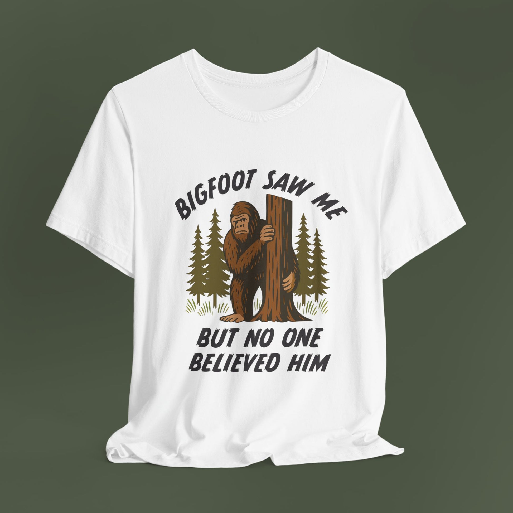 This shirt flips the script on cryptid encounters, giving Sasquatch a voice no one listens to.