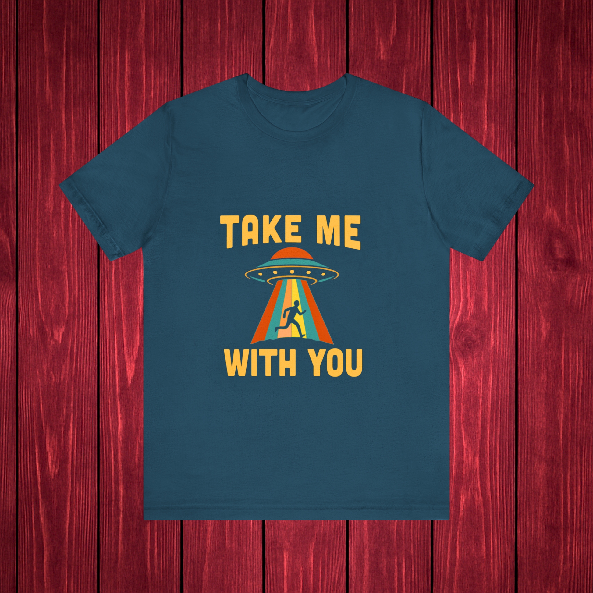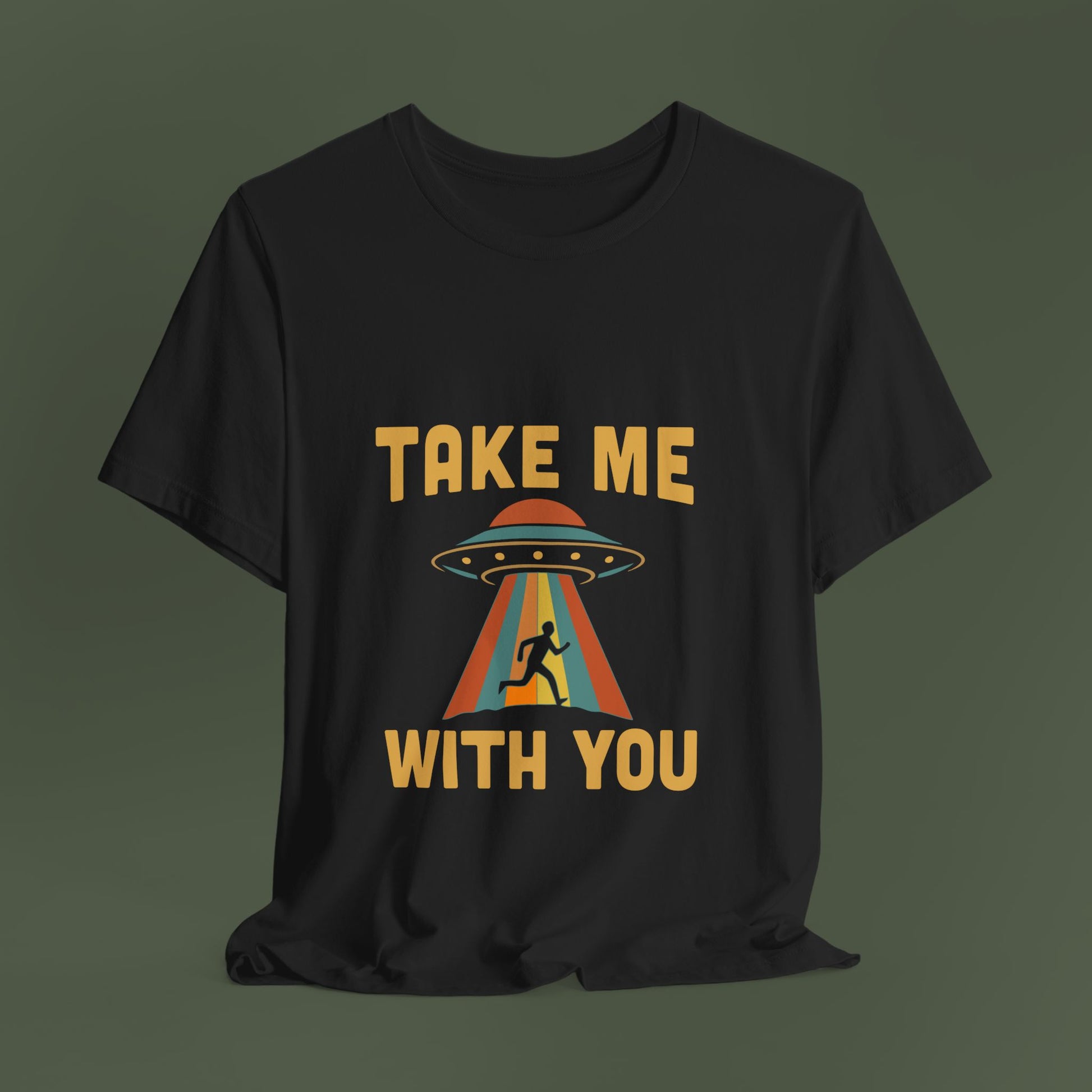 The Take Me With You tee captures the wish we’ve all had — ditch traffic, bills, and small talk for tractor beams and starlit skies.